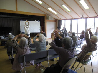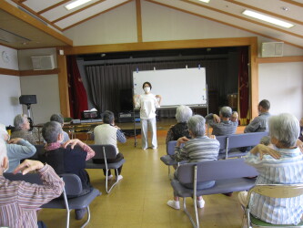 本日は音楽療法を行いました月に一回あり、皆さん楽しく参加され先生の話を笑顔で聞いていました音楽が流れると一緒に歌っていました(^^♪途中で体操も挟み皆さん一生懸命されていました