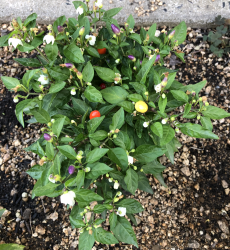 夏、他の華やかな花達の陰で目立つことなくひっそりと育っていた「観賞用トウガラシ」今や沢山実をつけ秋に向かい少しずつ寂しくなっている花壇に彩を添えてくれています因みに、普通のトウガラシと違って食べられなくはないですが、辛さや旨味が少なく美味しくないそうです(食べれない品種もあるので要注意!!)