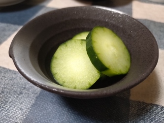 採れたて新鮮な野菜たちが「にら玉炒め」「揚げ茄子のポン酢和え」「きゅうりの浅漬け」になりメニューに加わりました。
