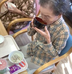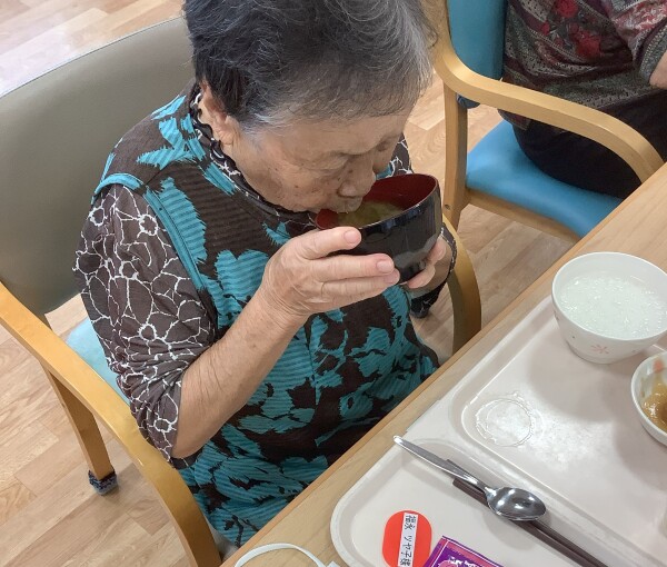 実際に朝食でにら入りみそ汁を提供したところ「おいしい」との感想もいただき、写真でも紹介しますが、みなさまじっくりと香りも味わいながら食べている様子がうかがえます!(^^)!