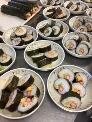 さて、調理場では巻き寿司を巻くための具材も用意し、よーいドンで巻きにかかります!(^^)!