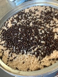 赤飯はもち米が入るため、いつもの分量の水で炊くとやわらかくなりすぎるとのことで、水分量を減らして炊き上げます( ..)φメモメモ