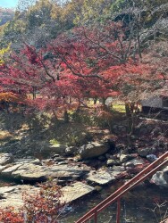 ここ玉島から吉備中央町への道すがら、ちょっと足を延ばして理事長先生おすすめの紅葉スポット「裏豪渓」へも立ち寄り散策しました!(^^)!