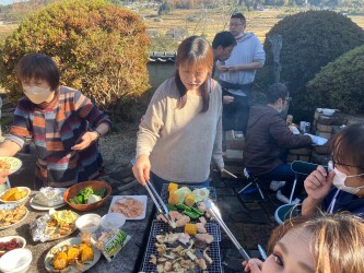 天気が良くて、穏やかな昼に庭で焼き鳥の炭火焼は美味かった。私は握り飯を5個食べました、柴漬けがすすんで、こちらも上手かった。「ごちそうさまでした」星野さんの明るさが神々しくも感じました。