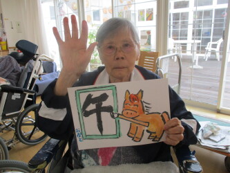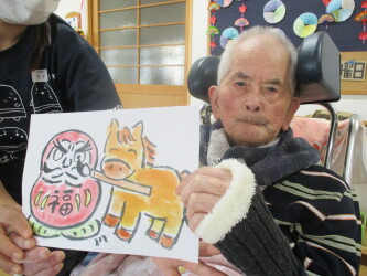 「干支の絵手紙をしました!①」では本館の皆さまのご様子をお伝えしたので、今回は新館の皆さまの絵手紙をご紹介します!!お部屋などの壁に飾ってあるので面会時にはぜひご覧ください(^^)/