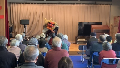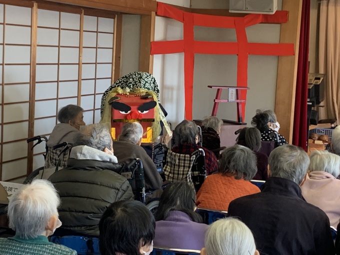 最後にヘトヘトになった獅子舞さんを皆で笑って、獅子舞イベント終了です。