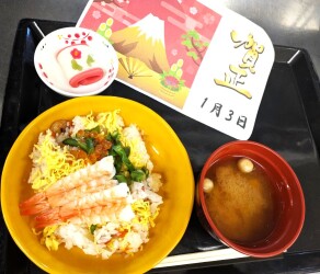 3日 ちらし寿司 赤だし 和菓子