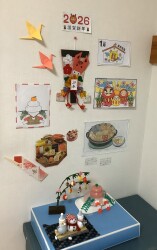 そして廊下のコーナーも正月らしくカラフルに仕上げられていました( ..)φメモメモ