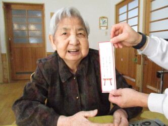 明けましておめでとうございます。今年は午年ということでユニットの飾りを変えてみました。12月27日には正月の生け花をしたり、1月1日はお屠蘇を飲んだりおみくじを引いたり、おせちを食べたりとお正月らしいスタートでした。(^▽^)
