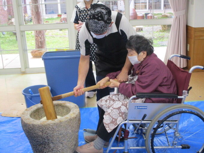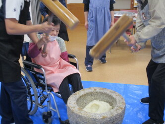 ついたお餅をたくさんお昼に食べる為に精一杯力を込めてつきました!