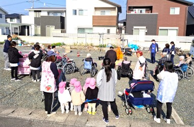 途中、保育園の園児が散歩のコースで立ち止まり、とんど焼きを見学しました。