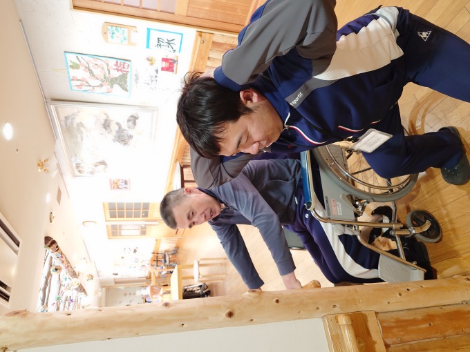 利用者様と一緒にリハビリをしました。職員も腰痛予防やダイエット予防の為、スクワットをしました。いっぱい汗をかいていい運動になりました。これからも二人三脚で頑張ります!!
