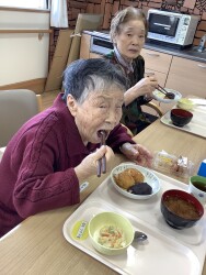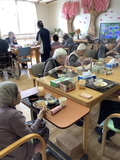 フロアーに向かうと、お膳を配った瞬間に箸を手に取り食べ始める方もいました!(^^)!(普段よりすごく意慾的です!)