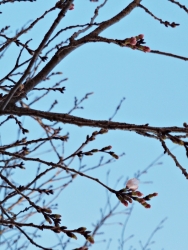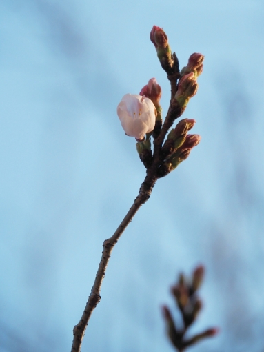 東京では開花が進んでいますねそんな中、長楽荘の標本木も・・「ちょっと! 一つ咲いとるでぇ」つつましやかに開きつつある桜が一輪5輪の開花宣言が待ち遠しく感じていましたが3/23(月)つぼみが開き、5輪の開花を確認日ごとに彩を増す標本木を眺めて、楽しみたいと思います