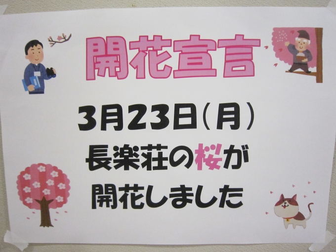 少しずつ暖かくなってきて長楽荘の桜の木の蕾も増えてきていますね。満開の桜の花が咲くまで待ち遠しいです。