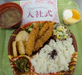 新入職員の皆さま また 永年勤続 30年 20年 10年の皆さま おめでとうございます!アミカル栄養課では 昼食の準備をして お待ちしておりました!これから 一緒に頑張って 法人アミカルを盛り上げていきましょう (^_-)-☆