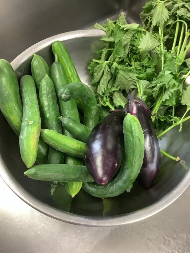 届いた野菜は「なす」「きゅうり」「青しそ」です。