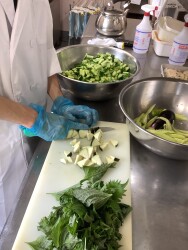 「調味液は野菜の水分が出るから濃くても大丈夫」など説明を聞きながらどんどん野菜がカットされます。