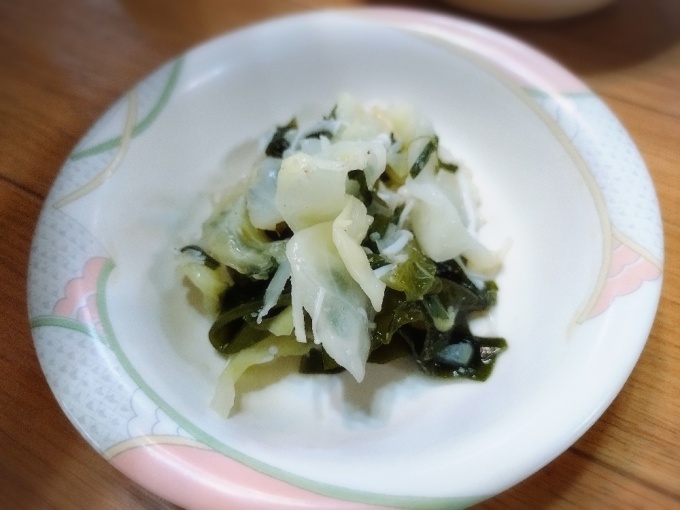 アミカルの畑から、新鮮な「にら」が届きました。早速、よって 洗って 切って…キャベツとわかめと和えました。わかめと色味が同化しましたが、にらの香りは特別です。新鮮野菜のありがたさが身に染みます。