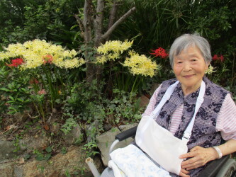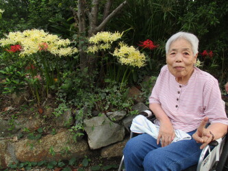彼岸花ご利用者と一緒に見に行きました。「きれいじゃじゃなあ。」「いっぱい咲いとるなあ。」「白いのが多いね。赤いのが好き。」「きれいですね。ありがとう。」色々な感想頂きました。