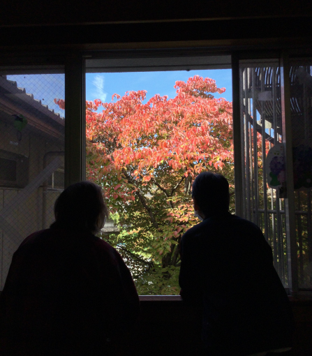 紅葉を眺めている入荘者