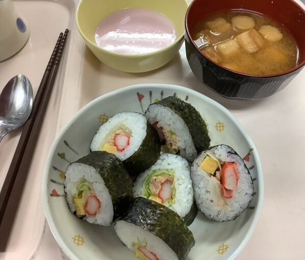 実際に配膳に上がったときに、ちょっと海苔が破れている巻き寿司があり「こりゃ、下手くそじゃなぁ」と正直にコメントされる方もいました(=_=)