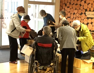 さっそく、ご入居者の皆さまが我先にと好みの帽子を手にされ喜ばれたところです。