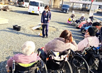 施設畑の前は敷石の駐車場で、毎年とんど焼きを行っております
