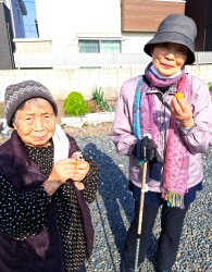 さて、とんどではミカンを焼きます。焦げた皮をむくと、熱々のミカンのできあがり、二~三房程度皆で分けて食します。ご利用者からは