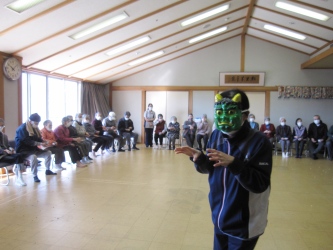 豆まきは午前10時から入所者の皆さんに集まっていただきました。