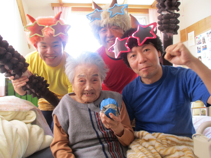 毎年恒例の豆まきの時期がやってきました!イケイケな鬼3人組と豆を巻いた後は皆で写真を撮りました!