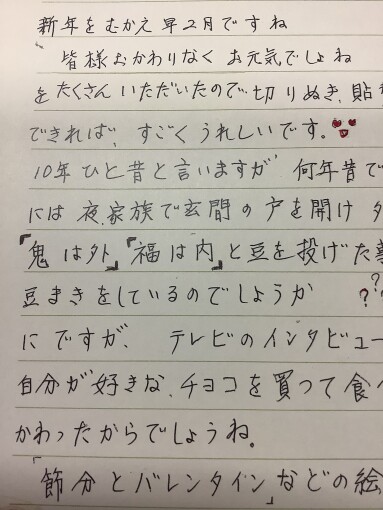 その素材も、自作のぬりえやPCの拾い画やご家族からの贈り物や、はたまたチラシに載っていた恵方巻まで(#^.^#)