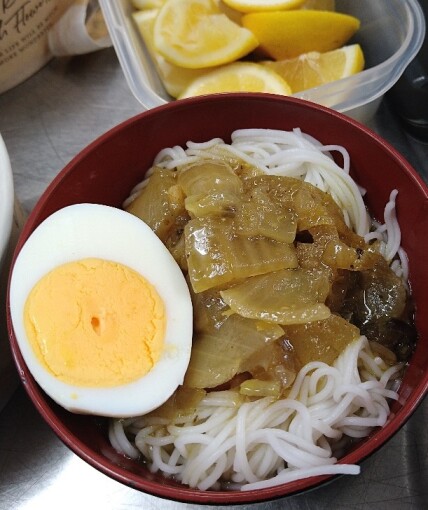 料理名を聞いたら「モヒンガー」というそうで、早速調べたらミャンマーの国民的な麵料理とのことでした( ..)φメモメモ