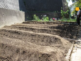 今年も長楽荘では入所者同士で協力し合い「さつま芋」を植える準備が着々と進んでいます。昨年の「うね」は、職員がへっぴり腰で何とか仕上げましたがなんと今年はびっくりするほど美しいうねができあがっています!!竿を置いてピシッとまっすぐ、きっちり測って。「水平器で測りたいくらい」とのこと。性格が表れますね。苗の植え付けが楽しみです♬