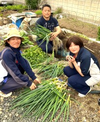 ということで、畑に集合し玉ねぎの収穫をしました(^^)/ゴロゴロとした立派な玉ねぎがドーンと届きました!(^^)!早速厨房に持ち帰り、一旦段ボール箱に入れ、さて何に使おうか( ^ω^)・・・?新玉ねぎなので、できれば生でいただきたいですね( ^)o(^ )どうやって食べるか、アレコレ考えは浮かびますね!(^^)!またおいしい写真が撮れたら、お伝えします\(^o^)/